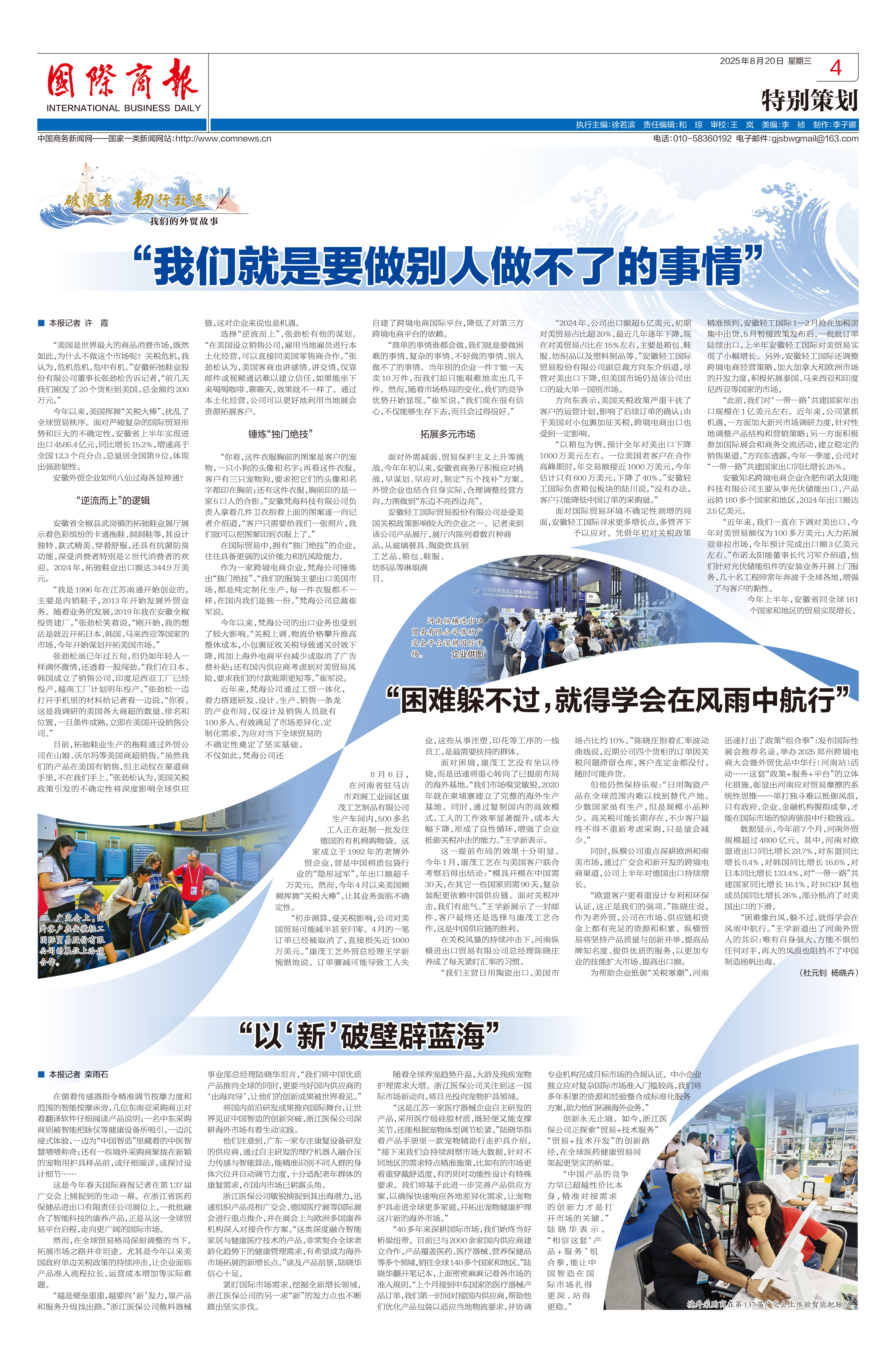近日,商務(wù)部主辦的權(quán)威媒體《國(guó)際商報(bào)》在重要版面刊發(fā)題為《“困難躲不過(guò),就得學(xué)會(huì)在風(fēng)雨中航行”》的深度報(bào)道,重點(diǎn)關(guān)注了在全球經(jīng)濟(jì)形勢(shì)復(fù)雜多變背景下,中國(guó)外貿(mào)企業(yè)迎難而上、積極求變的突圍之道。我司——駐馬店市康茂工藝制品有限公司作為外貿(mào)韌性發(fā)展的優(yōu)秀案例,被該報(bào)道予以重點(diǎn)推介。