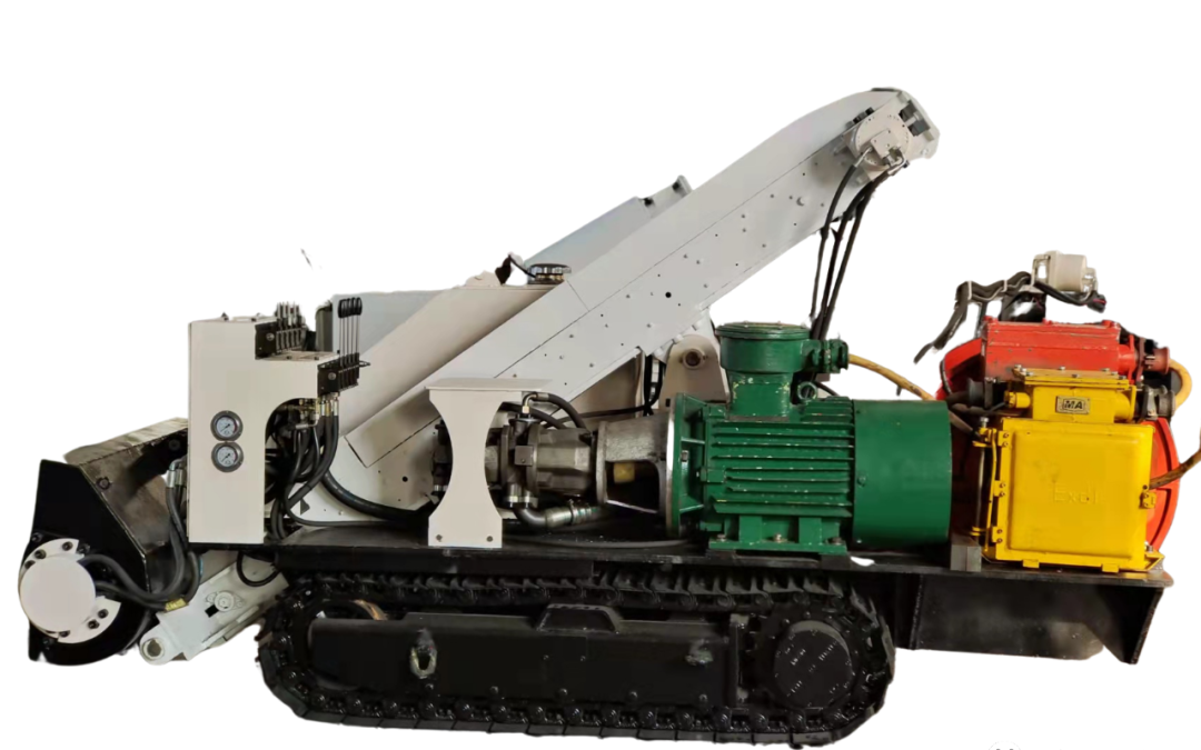 螺旋收集部采用液壓馬達驅動,安全可靠,裝載效率高;機體方便拆卸、運輸、穩(wěn)定性高;履帶行走,機動靈活,爬行能力強;轉載部可向左、右各90°旋轉,實現(xiàn)落煤點無死角;冷卻方式采用風冷,這種風冷方式結構簡單、體積小、重量輕、熱阻小、換熱面積大、 使用安裝方便、它的散熱效果較高。